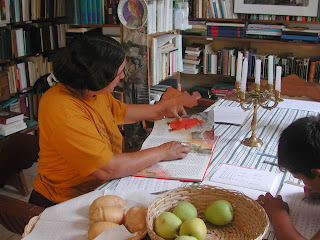 Accidentally I have discovered that if one has a garden (mine is a cemetery) and a library, the two things Cicero said were needed for happiness, one has the ideal setting for education. We combine the German concept of 'kindergarten', but for all ages, we use Margaret McMillan's early childhood education for those in poverty, Dr Maria Montessori's concept of freedom to explore tanglible surfaces and shapes learning through the body's senses in tandem with the brain, Don Lorenzo Milani's education of the most deprived, Fernando Cardenal/Paulo Freire concept of alphabetization for all ages, and we do this in a library in a cemetery where on Sundays Romanian Roma families come to learn and work joyously.